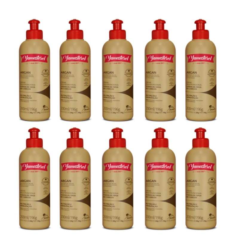 O Creme Multifuncional Yamasterol Argan, conhecido como Douradinho, mantém todas as propriedades do Yamasterol tradicional e ainda promove nutrição intensa e redução do frizz graças aos óleos de argan e macadâmia presentes em sua fórmula.