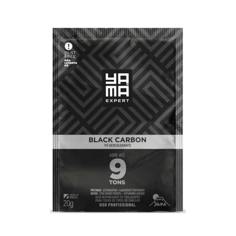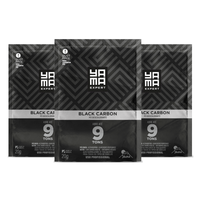 Kit com 6, o Pó Descolorante Black Carbon Yamá Expert possui um conceito inovador de descoloração graças a sua pigmentação negra que potencializa o esfriamento do tom durante o clareamento, excluindo e neutralizando o aparecimento de reflexos amarelos não desejados, pois o carvão vegetal presente em sua formulação age como um Detox natural nos fios, além de possuir propriedades purificantes permitindo criar uma base mais neutra na qual o profissional possa trabalhar com maior segurança. Abre até 9 tons e não levanta pó durante a utilização, graças ao sistema Dust Free.