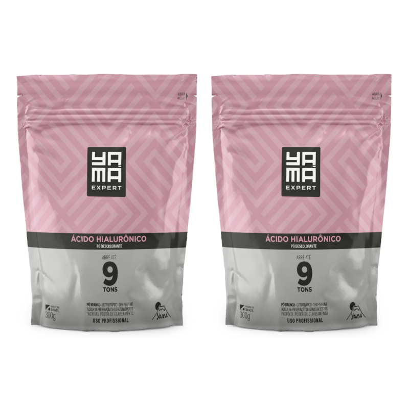 O Pó Descolorante Yamá Ácido Hialurônico possui em sua composição o ácido hialurônico, um ativo capaz de auxiliar a hidratação e a preservar a estrutura dos fios, mantendo seus cabelos saudáveis durante o processo de descoloração. Sua formulação com pó branco permite a abertura de até 9 Tons.