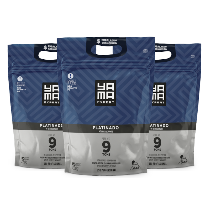 Kit com 3, o Pó Descolorante Yamá Platinado foi especialmente desenvolvido para processos de descoloração que buscam atingir a tonalidade Platinada. Sua formulação com Pó Azul possui poder Antiamarelamento, minimizando o tom amarelado dos cabelos.