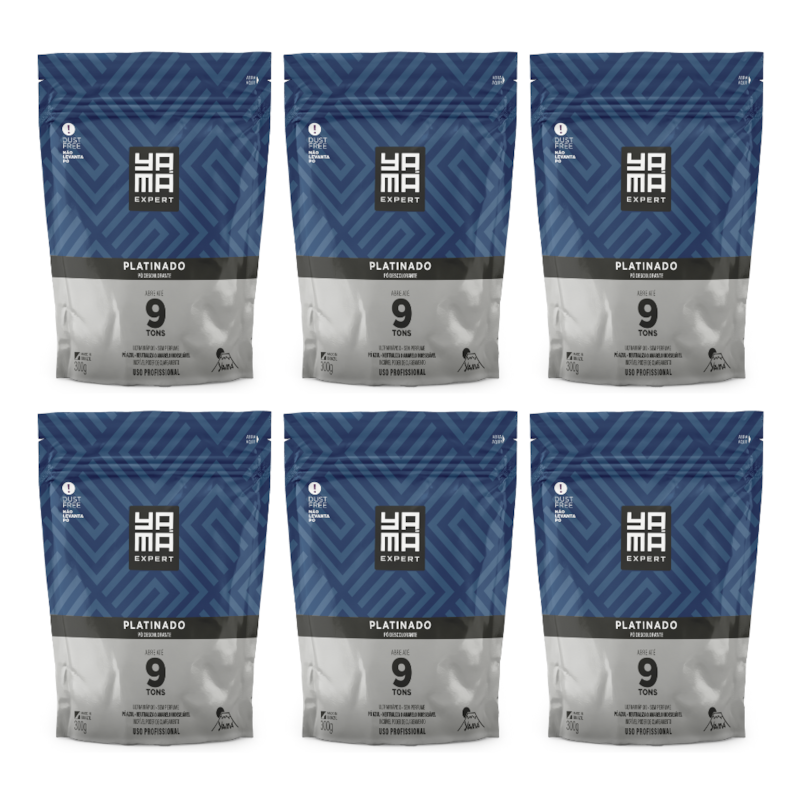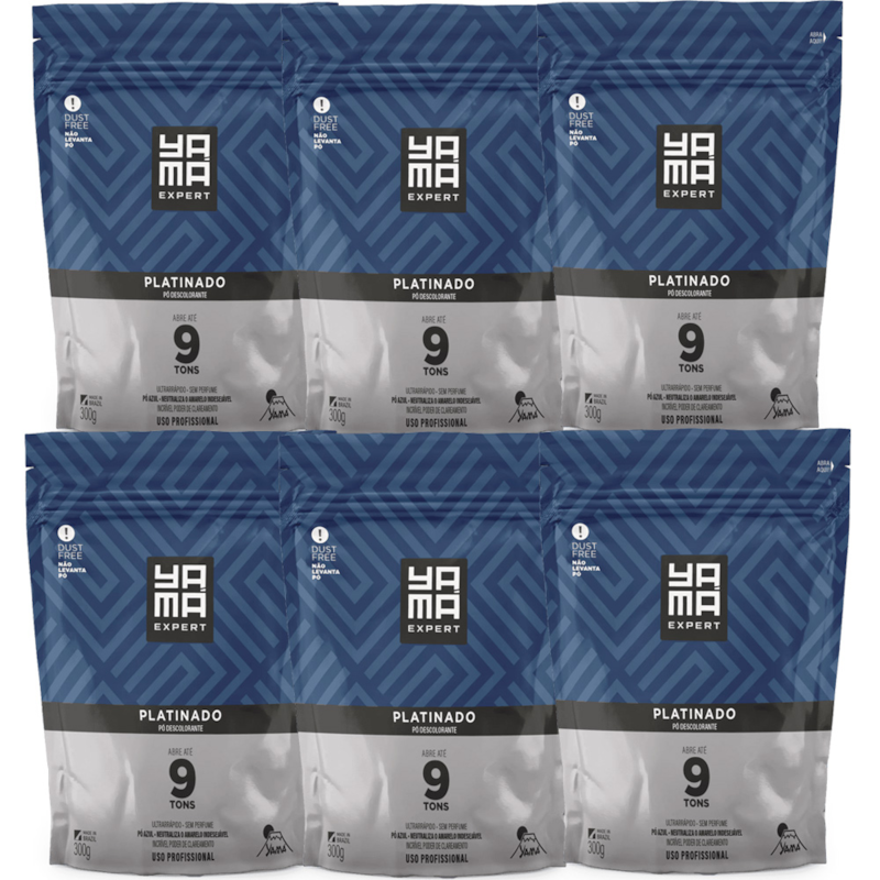 Kit com 6, o Pó Descolorante Yamá Platinado foi especialmente desenvolvido para processos de descoloração que buscam atingir a tonalidade Platinada. Sua formulação com Pó Azul possui poder Antiamarelamento, minimizando o tom amarelado dos cabelos.